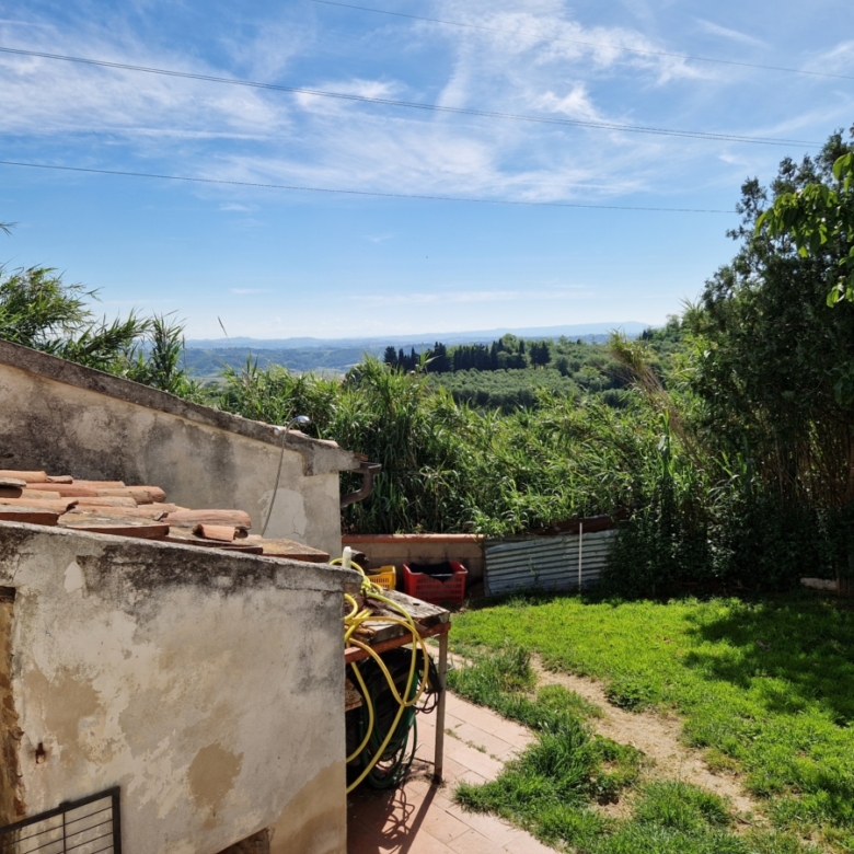 An electric gate leads to the property, which is surrounded by an olive grove with enchanting views. The rustico (farmhouse or country house), which was completely renovated 30 years ago, is situated in a quiet, secluded location and has a very healthy building fabric. All it needs is a nice coat of paint (the municipality suggests several colors to choose from so that it blends harmoniously into the context of the Tuscan villages) and a loving hand. At the moment, a single dog breeder of a certain age lives there, who takes excellent care of the land. The furnishings/kitchen and bathroom (one is relatively new) are functional but could be renovated.