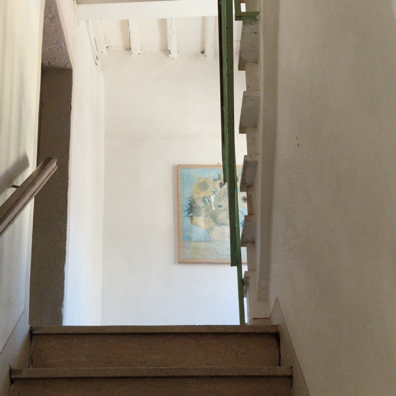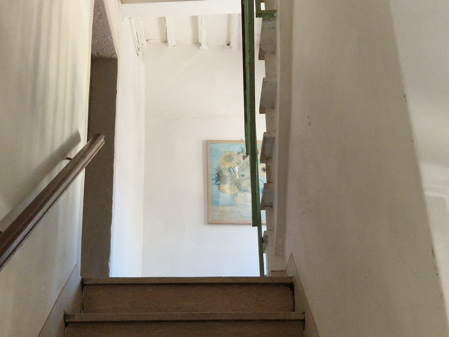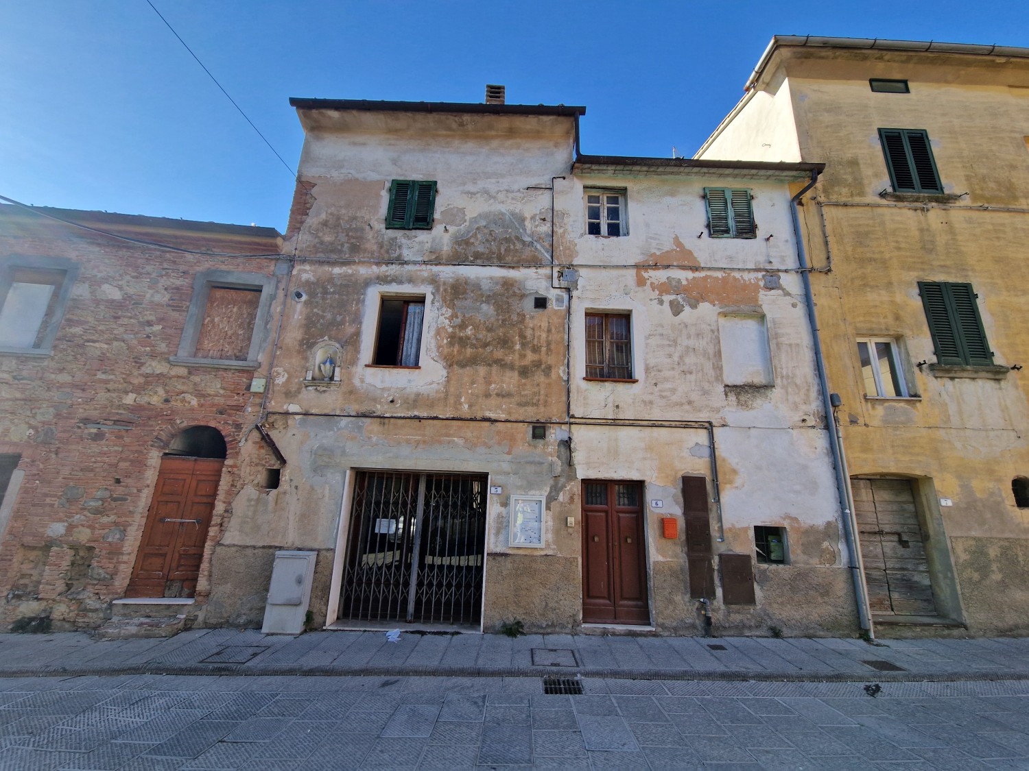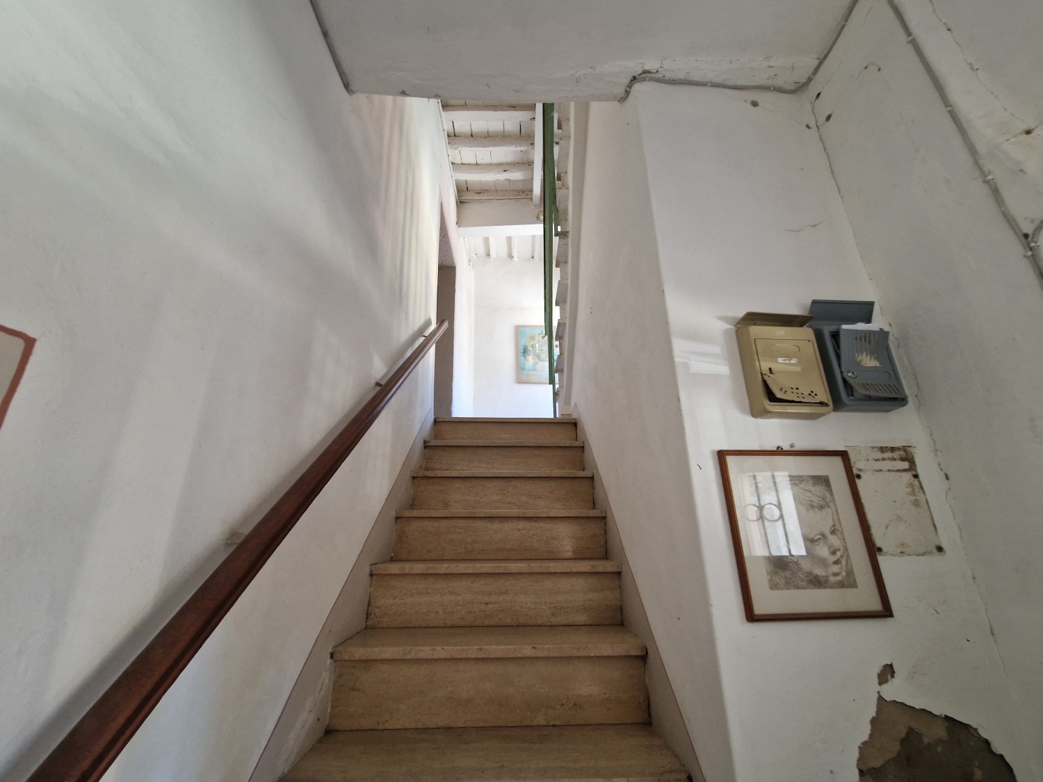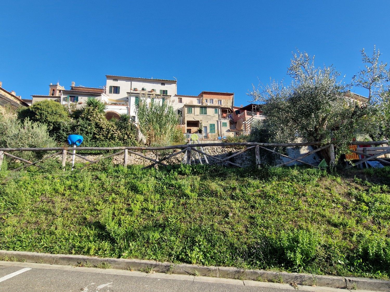 Das Haus, in dem sich die Wohnung im ersten Stock befindet, liegt sich direkt an der Piazza des kleinen Dorfes. Im Sommer findet hier das „festa dell´allegria“ statt und das ist auch das Motto dieses hübschen Dorfes. Die Fassade ist, wie man sieht, nicht restauriert.