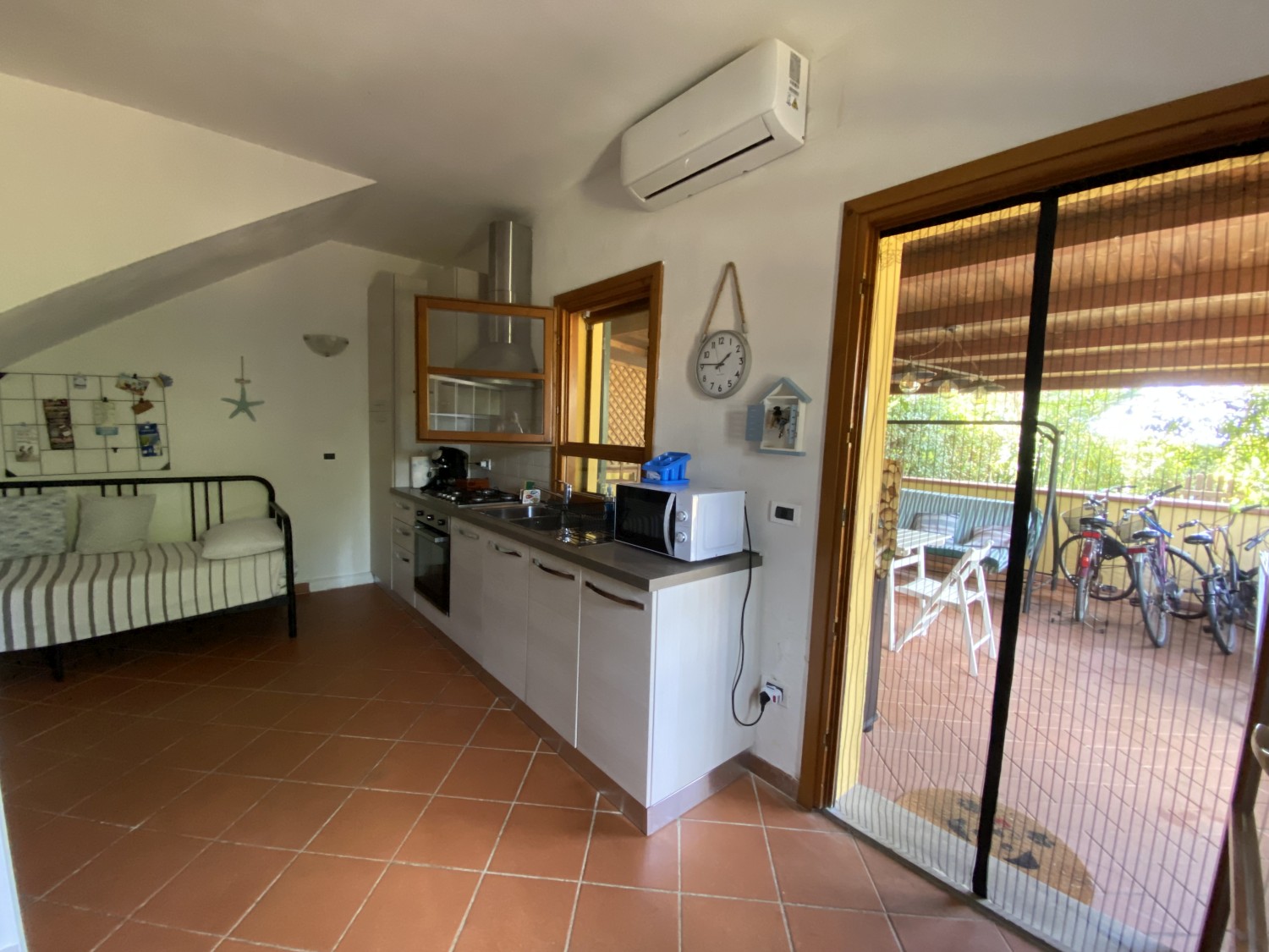 Es handelt sich um ein komfortables Studio in einer kürzlich erbauten Wohnanlage mit einer großen Veranda aus Holz und Naturstein und einem großen privaten Garten mit Grillplatz.