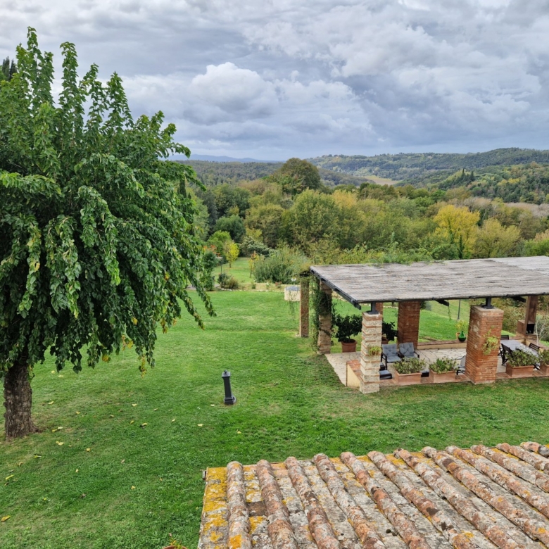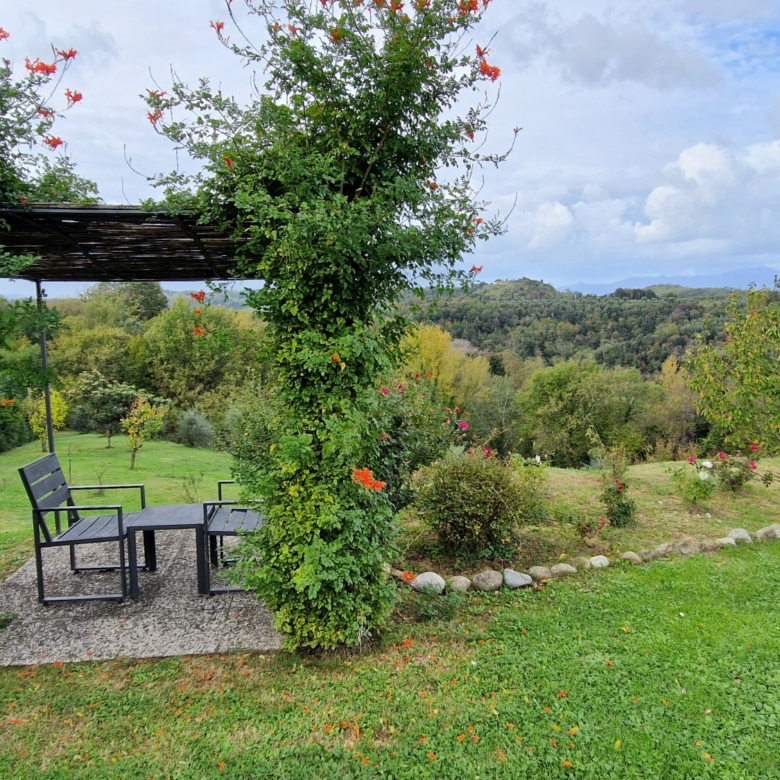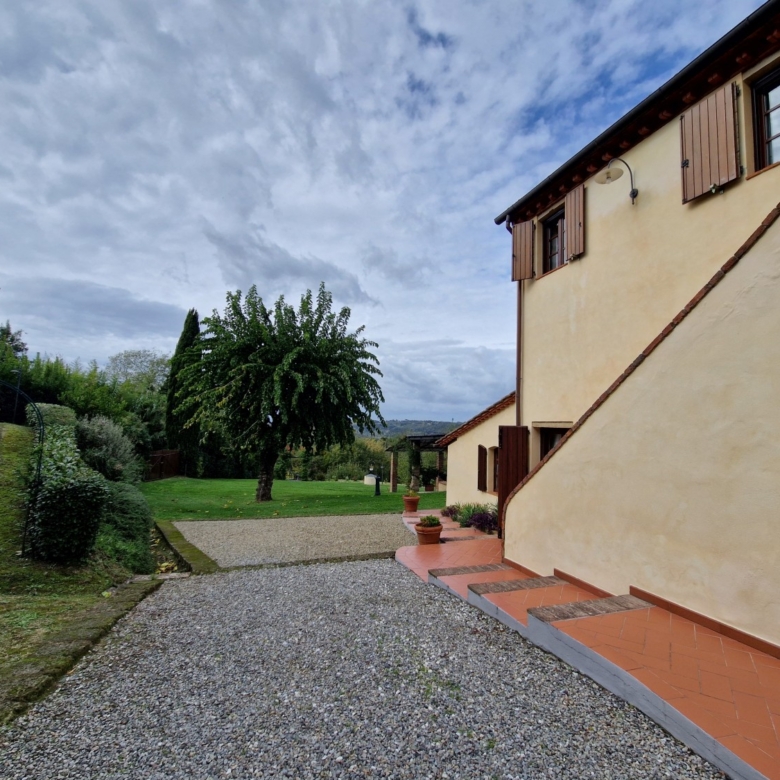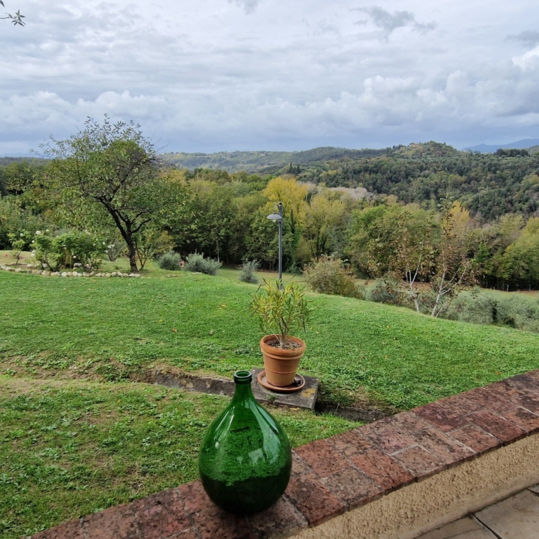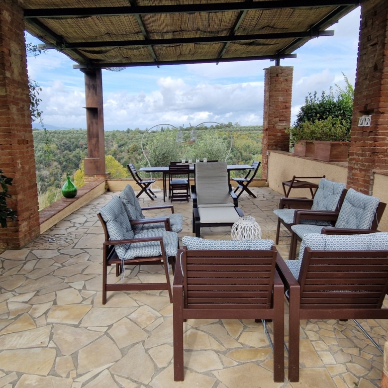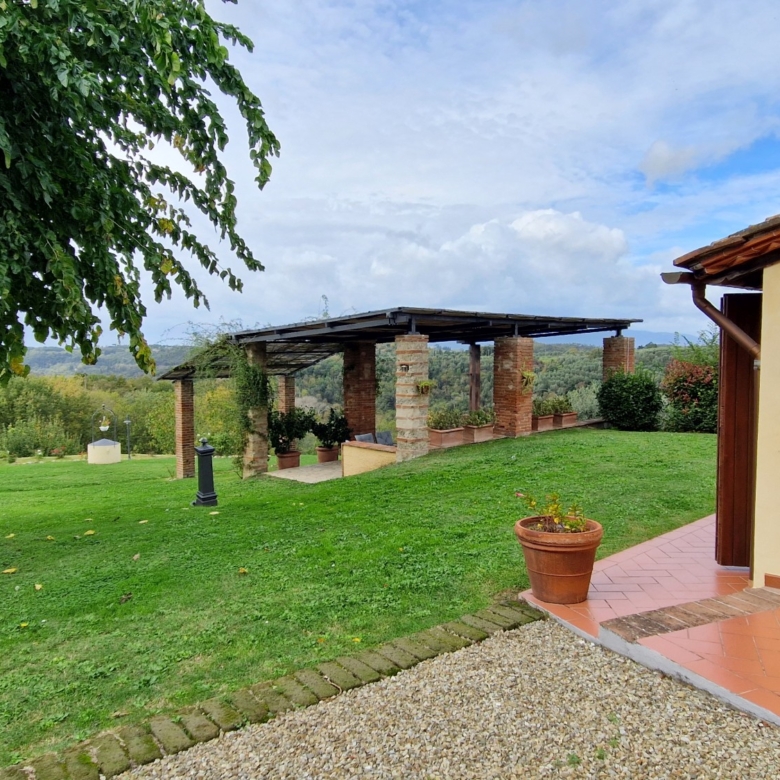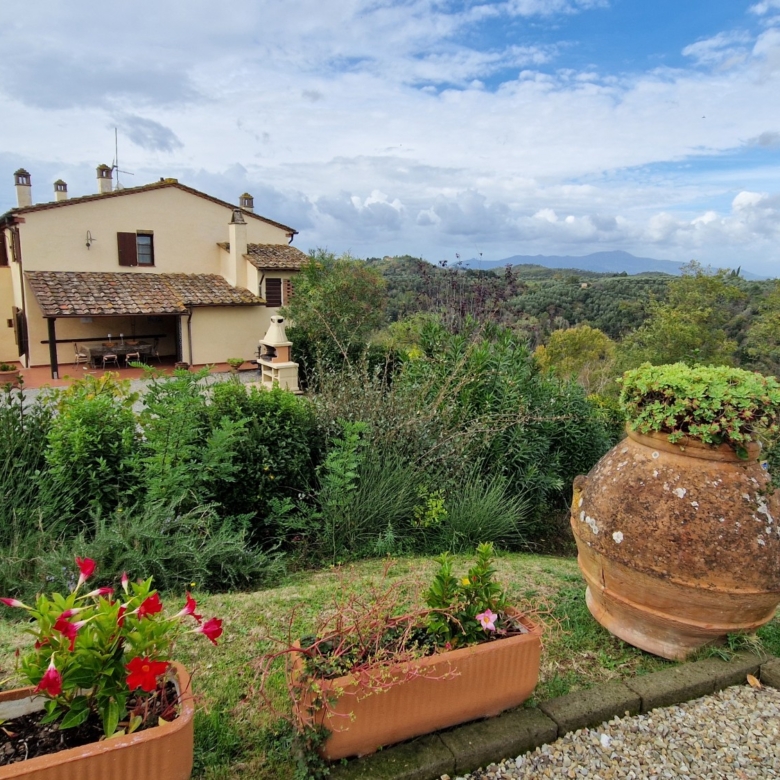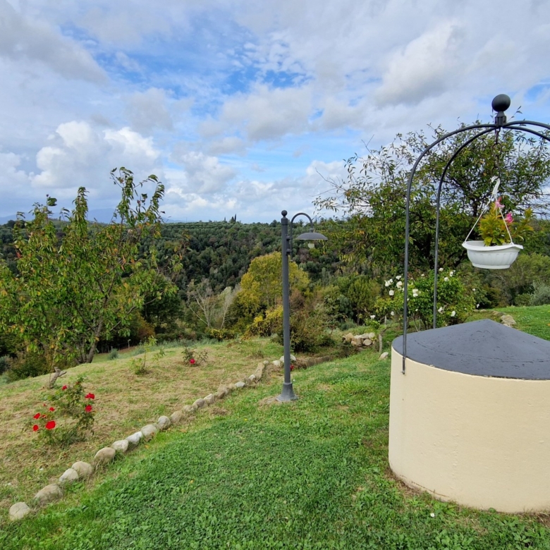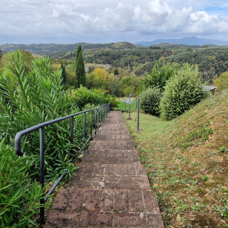 Der Swimmingpool (12 x 6 m) befindet sich auf einem Hügel vor dem Haus, hochwertig hergestellt mit einer Stahlbetonkonstruktion (französischer Hersteller Desjoyeaux). Vom Hügel und Pool aus hat man einen wunderschönen Rundumblick. Man kann auf der einen Seite die Monti Pisani und die Garfagnana und auf der anderen Seite die Hügel von Volterra sehen.