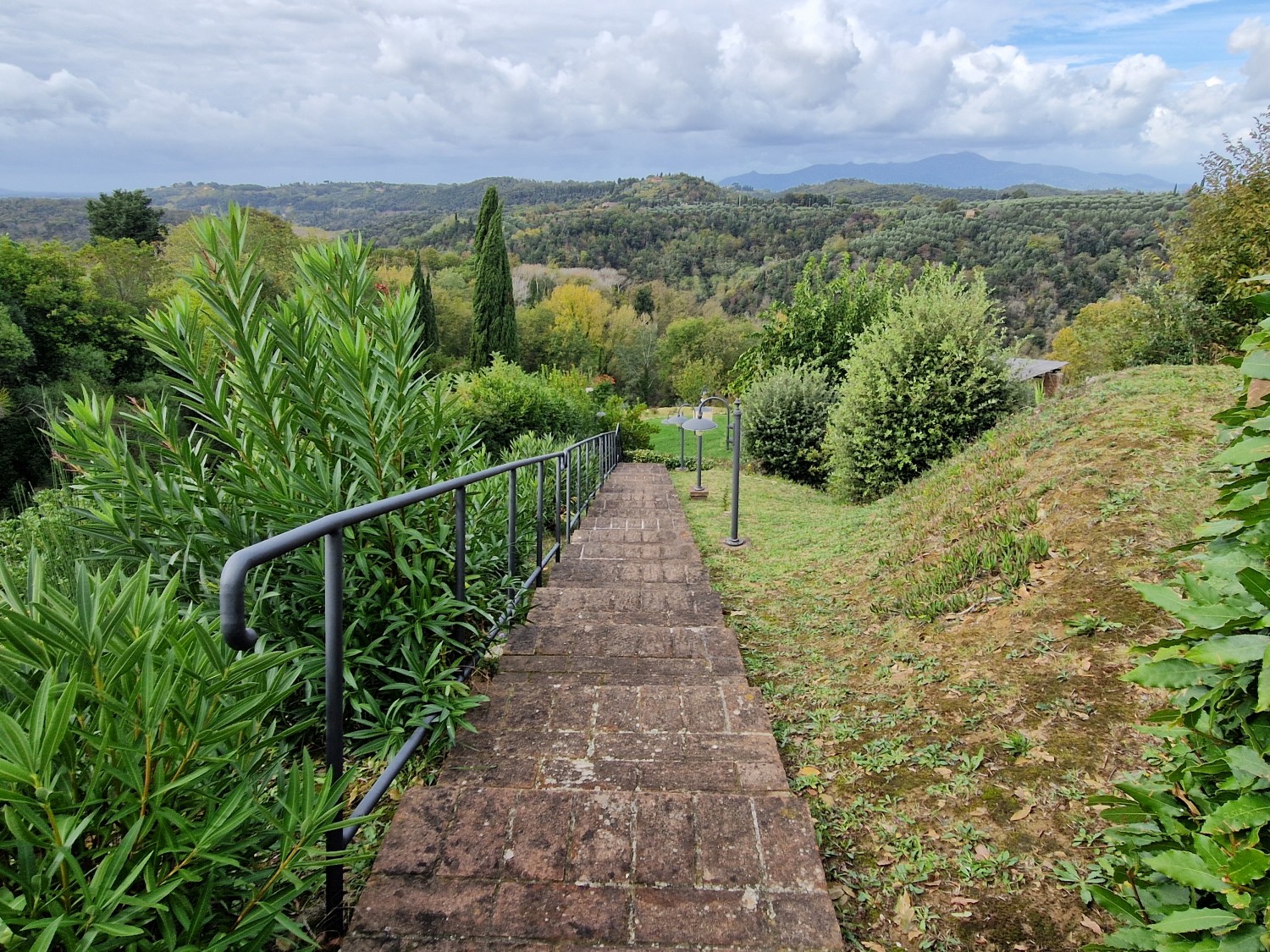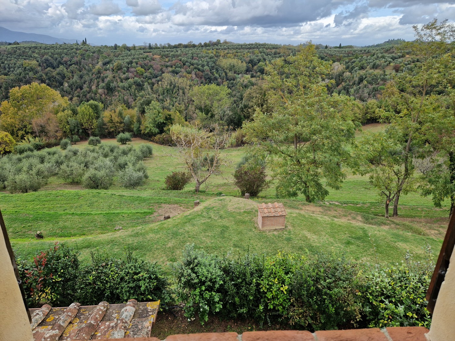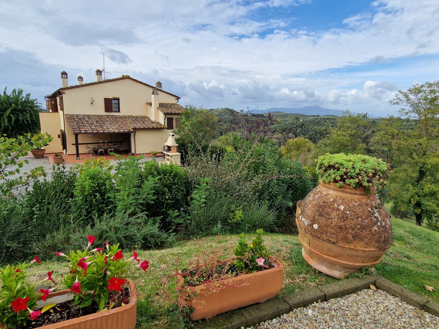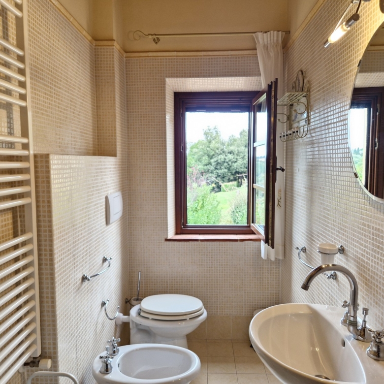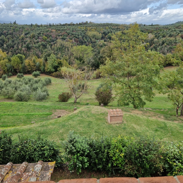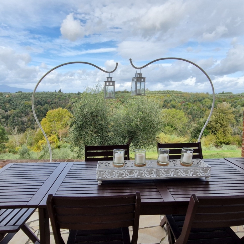 Der Swimmingpool (12 x 6 m) befindet sich auf einem Hügel vor dem Haus, hochwertig hergestellt mit einer Stahlbetonkonstruktion (französischer Hersteller Desjoyeaux). Vom Hügel und Pool aus hat man einen wunderschönen Rundumblick. Man kann auf der einen Seite die Monti Pisani und die Garfagnana und auf der anderen Seite die Hügel von Volterra sehen.