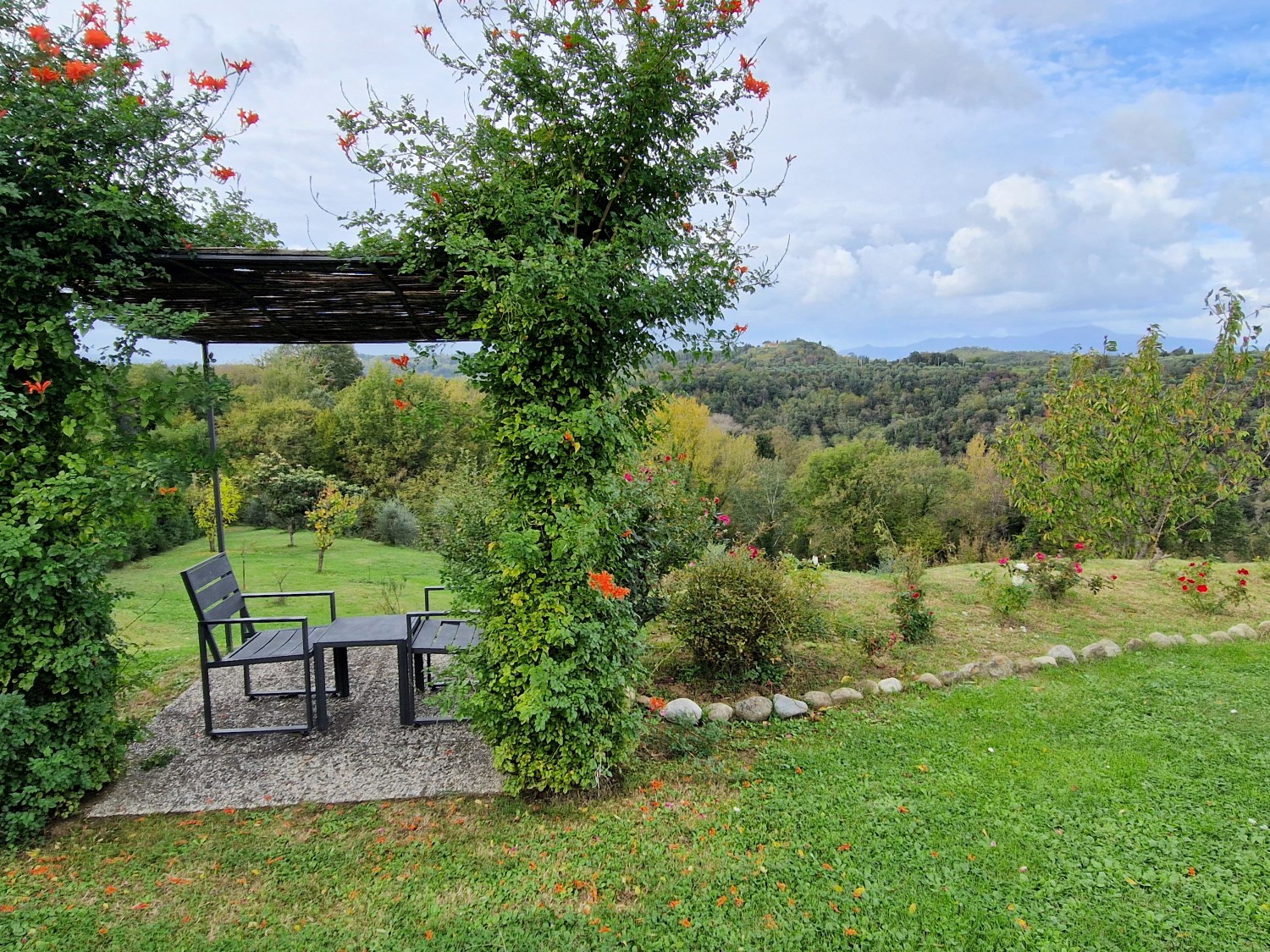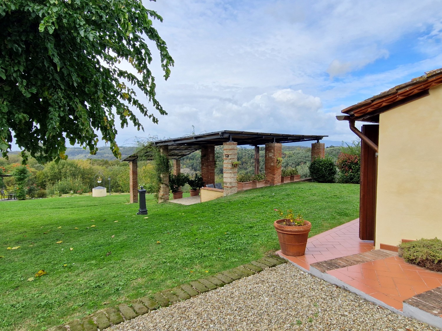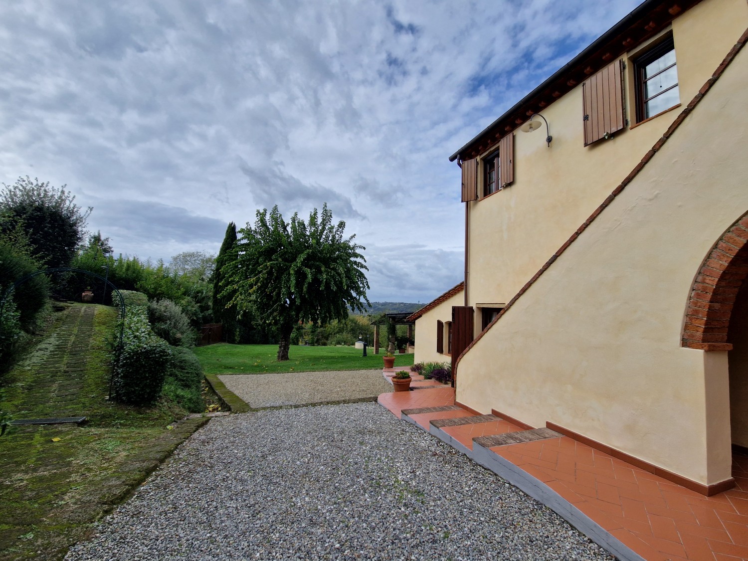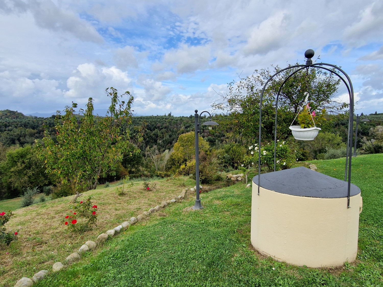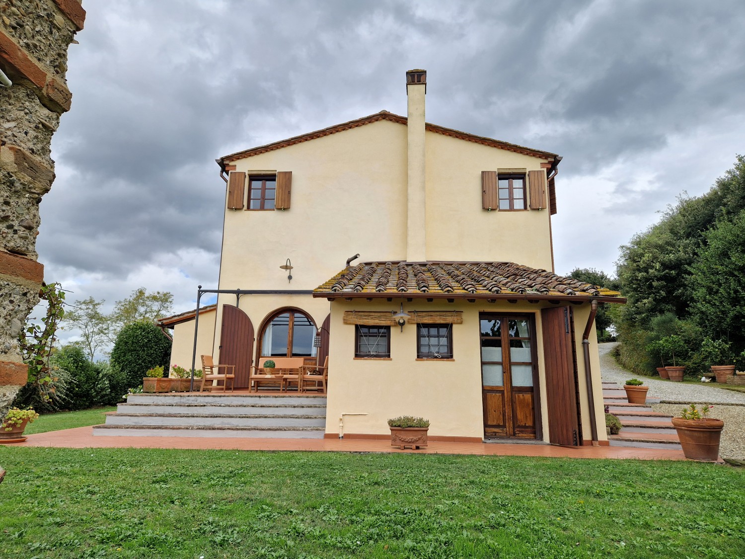 Der Swimmingpool (12 x 6 m) befindet sich auf einem Hügel vor dem Haus, hochwertig hergestellt mit einer Stahlbetonkonstruktion (französischer Hersteller Desjoyeaux). Vom Hügel und Pool aus hat man einen wunderschönen Rundumblick. Man kann auf der einen Seite die Monti Pisani und die Garfagnana und auf der anderen Seite die Hügel von Volterra sehen.