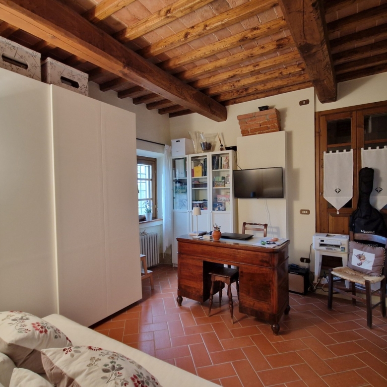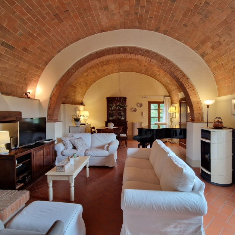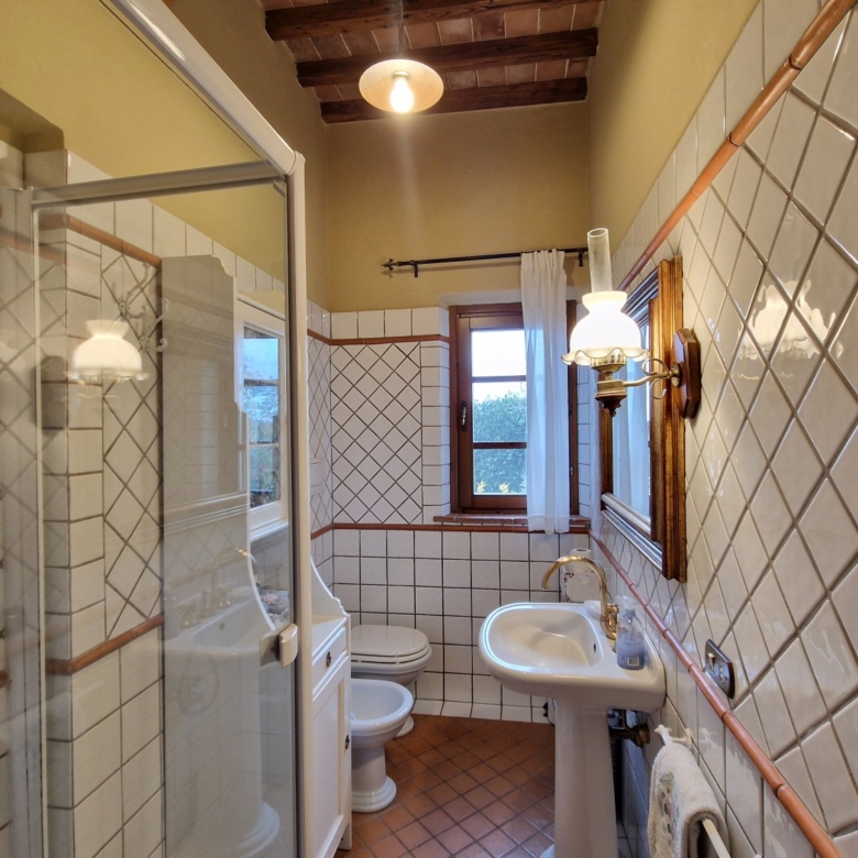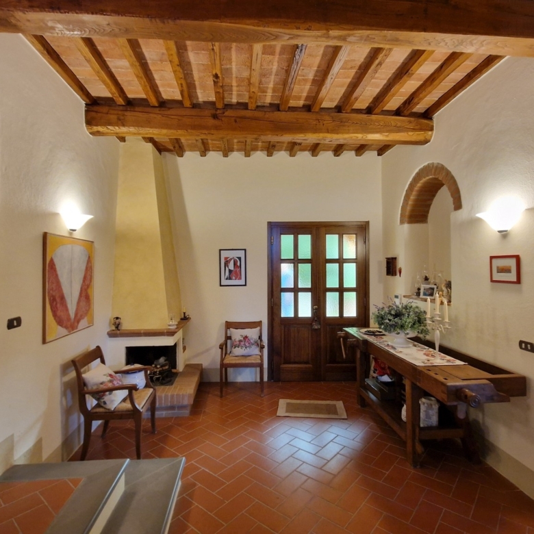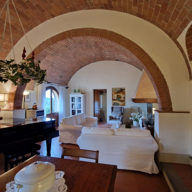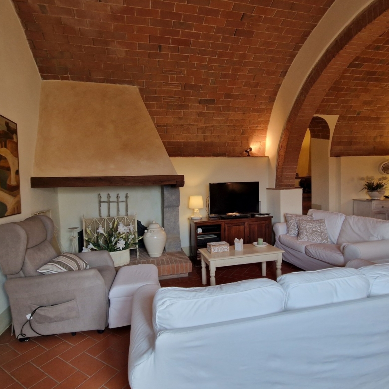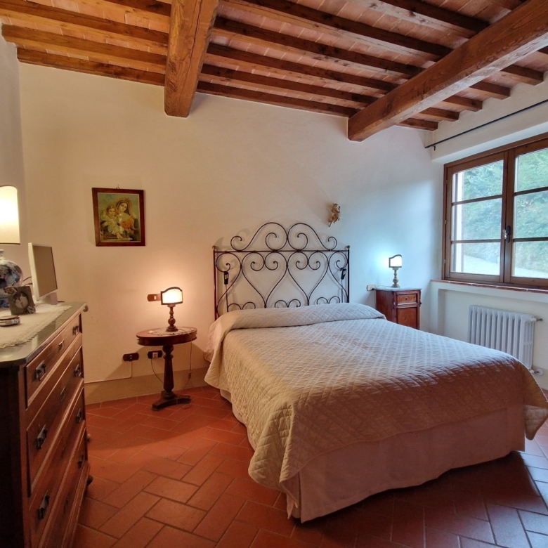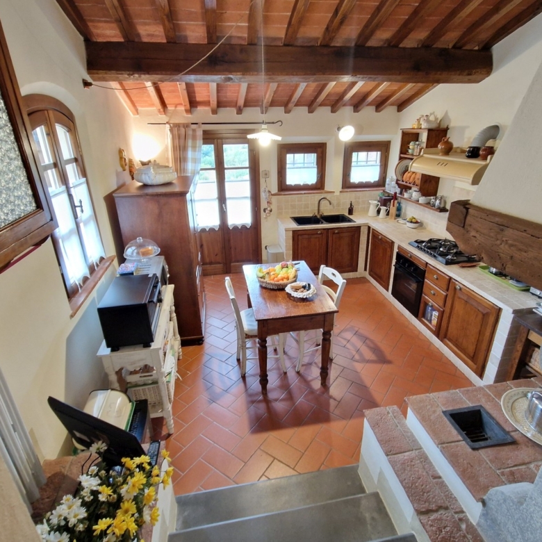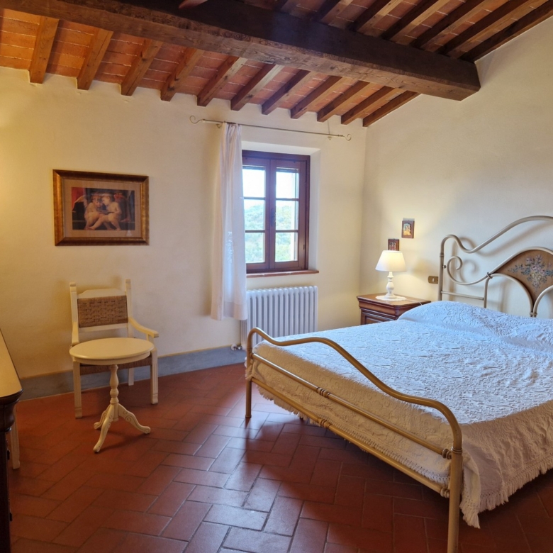 Das Obergeschoss besteht aus: einem großen Wohnbereich mit Kamin und Küchen-/Essbereich, 4 Schlafzimmern und 3 Badezimmern, mit Decken aus Kastanienholzbalken und -sparren und toskanischen Ziegeln sowie Terrakottaböden. Das Obergeschoss wird an Touristen durchschnittlich etwa 15 Wochen von Mai bis September über eine sehr gute einheimische Agentur vermietet. Das kann ausgebaut werden.