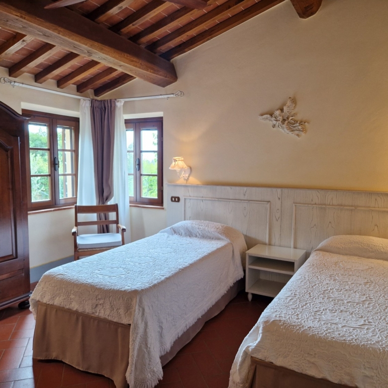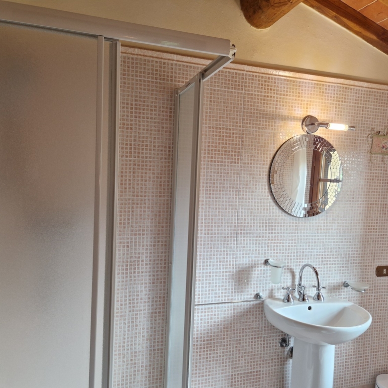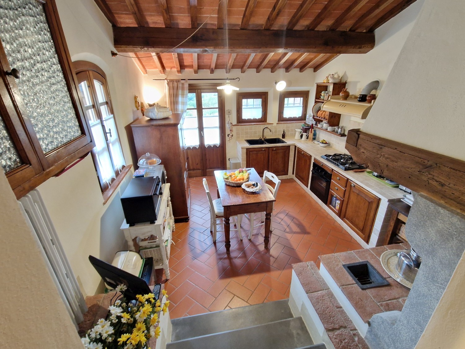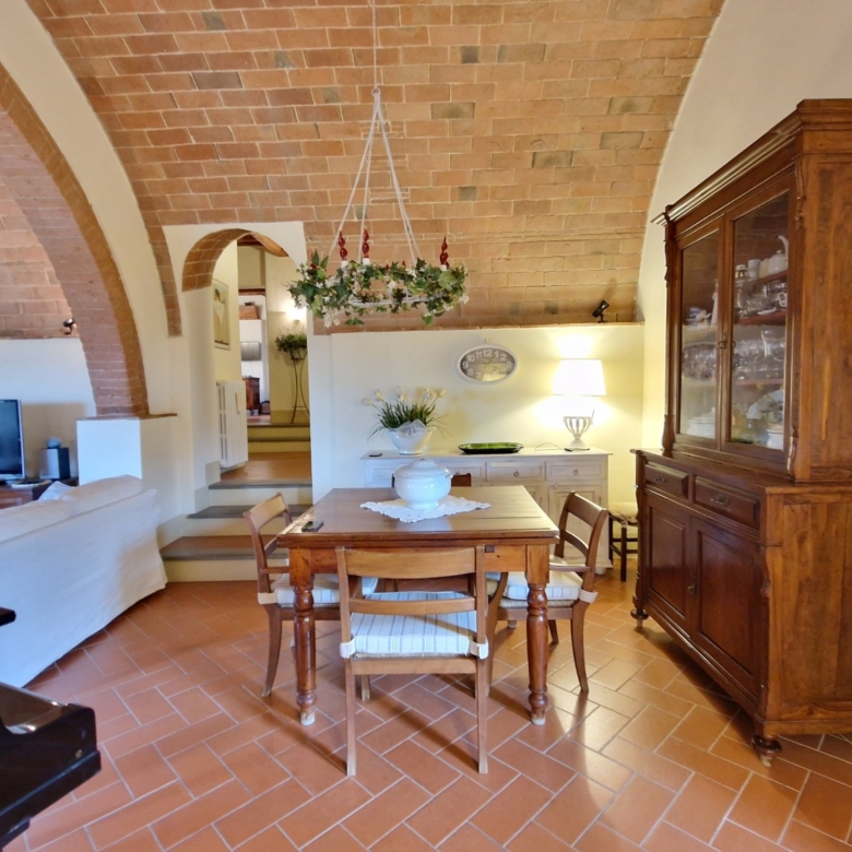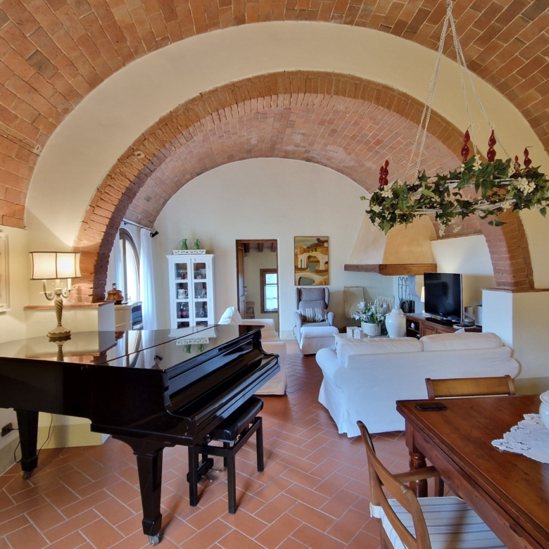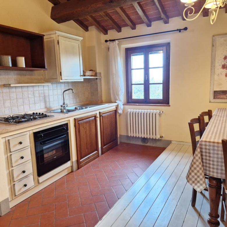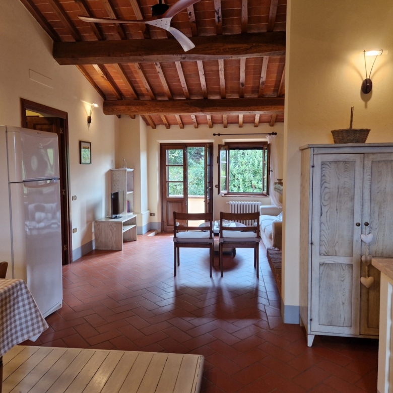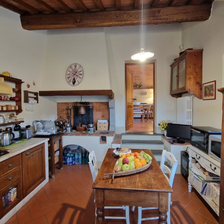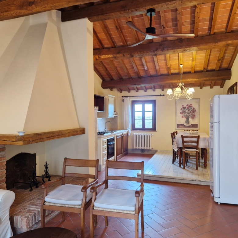 Das Obergeschoss besteht aus: einem großen Wohnbereich mit Kamin und Küchen-/Essbereich, 4 Schlafzimmern und 3 Badezimmern, mit Decken aus Kastanienholzbalken und -sparren und toskanischen Ziegeln sowie Terrakottaböden. Das Obergeschoss wird an Touristen durchschnittlich etwa 15 Wochen von Mai bis September über eine sehr gute einheimische Agentur vermietet. Das kann ausgebaut werden.