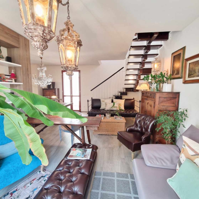 Erster Stock: Komplete Etage mit Holzbalkendecken, 1 Studio mit Terrasse, 1 Schlafzimmer mit Terrasse, 1 Bad, 1 Leseecke, separater Eingang